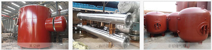 专业设计、制造A2级压力容器及电力、石化、水泥、冶金、炼油、制药、食品、水处理等碳素钢、不锈钢、合金钢及各种材质的非标准设备。主要生产的产品有:储气罐、油罐、水箱、装配式(组合)式水箱、膨胀水箱、集(分)水器、塔器、容器、定期(连续)排污扩容器、疏水扩容器、反应釜、过滤器、冷却器、沸腾床冷却器、皮带机、输送机、高(低)联箱、结晶罐、头提机、化灰机、螺旋输送机、滤网、平板滤网、拦污栅、粗(细)滤油器、封头管件、除盐水箱、法兰管道、以及钢构件现场制造安装。